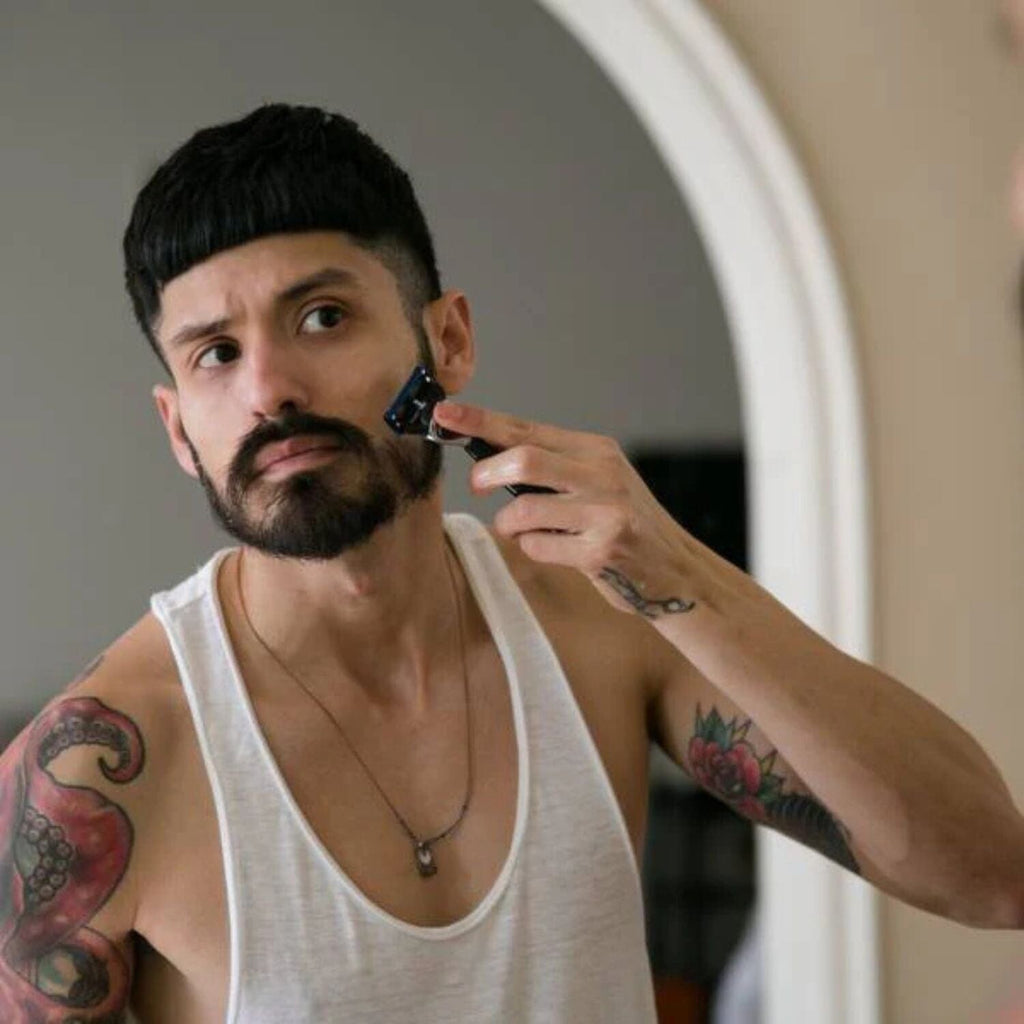 This clear, non-foaming shave gel allows you to see where you are shaving so that you can shave with ease. Aloe Vera provides the calming hydration essential to soothe skin, while vitamins C & E help fight off irritation and discomfort that all guys have experienced when shaving. It is even designed for water-free shaving usage. Whether it is a beard style, moustache, sideburns, neck clean up or a full shave, you can now put it all on the line. This liquid formula does not clog your razor blade. Features a Mint Cooling Sensation.