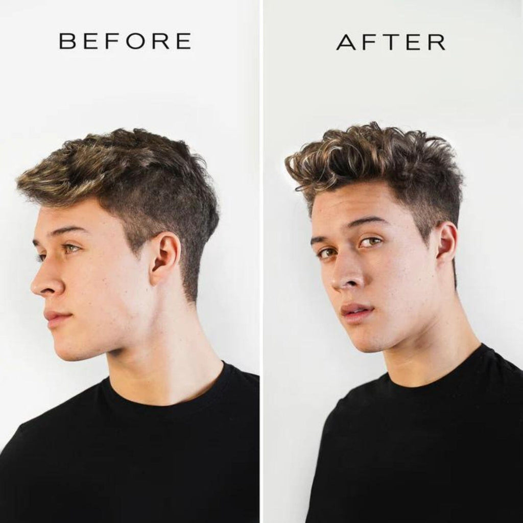 Take a small amount and spread it evenly across both palms. Rub your hands together to warm it up. Once the clay is smooth, push your hands through your hair until you get the loose, messy and relaxed hairstyle you desire. Or grab your comb for a cleaner look.