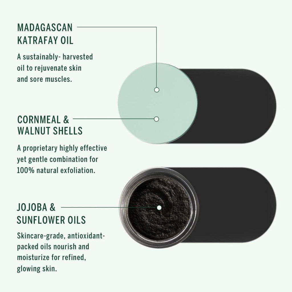 Designed to provide highly effective yet gentle exfoliation, its proprietary blend of cornmeal, walnut shells, and activated charcoal buffs away dead skin cells and buildup while stimulating circulation.