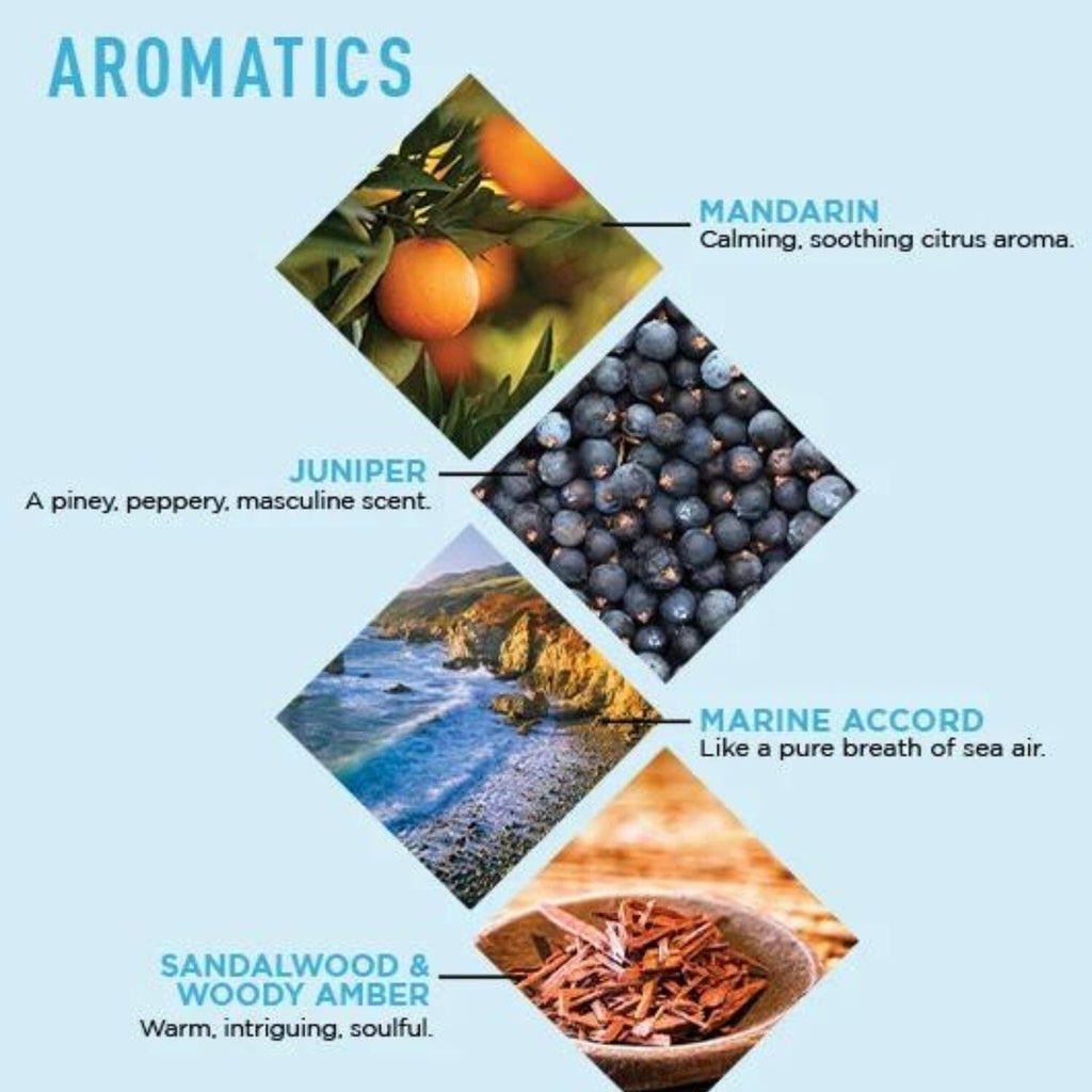 This lightweight, soothing lotion with Organic Aloe Vera and Hyaluronic Acid offers breathable texture, helps rejuvenate the skin, and helps boost skin’s moisture content. Refreshing notes of Mandarin, Lemon Citrus, Juniper, and Lavender round out your aromatic Pacific coast getaway, while your skin is left smooth and hydrated.