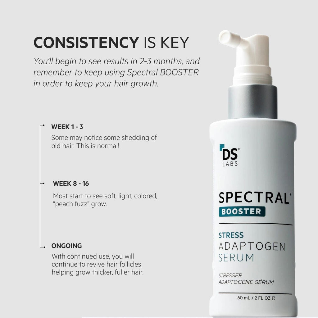 - Spectral Booster combines botanical adaptogens with an advanced multi-peptide complex to support healthier-looking hair.
