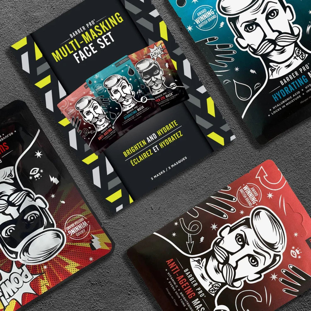 The BARBER PRO Multi Masking Set contains a selection of BARBER PRO favourites that will help to rehydrate, replenish & relax the skin. Because skincare is for everyone.