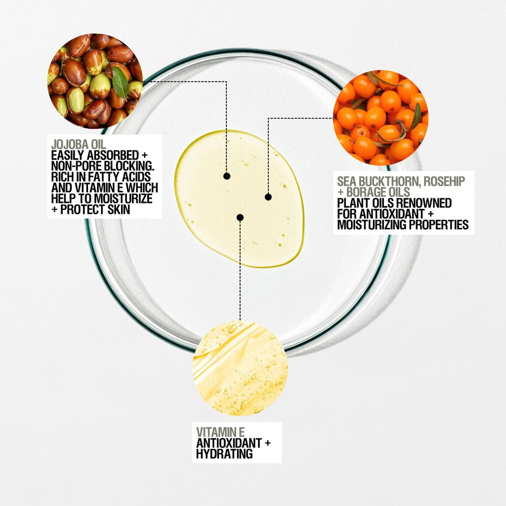 - Expert blend of antioxidant-rich Vitamin E, Jojoba Oil, Sea Buckthorn, Rosehip and Borage Oil