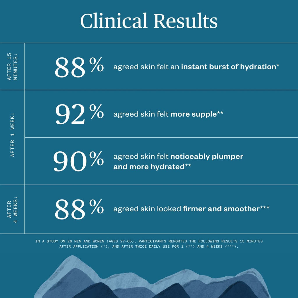 This deeply hydrating serum taps into Hyaluronic Acid and forest actives to restore concentrated hydration to dehydrated skin. It’s a thirst-quenching formula that helps skin lo ok plump er and firmer—and full to the brim with moisture and bounce.