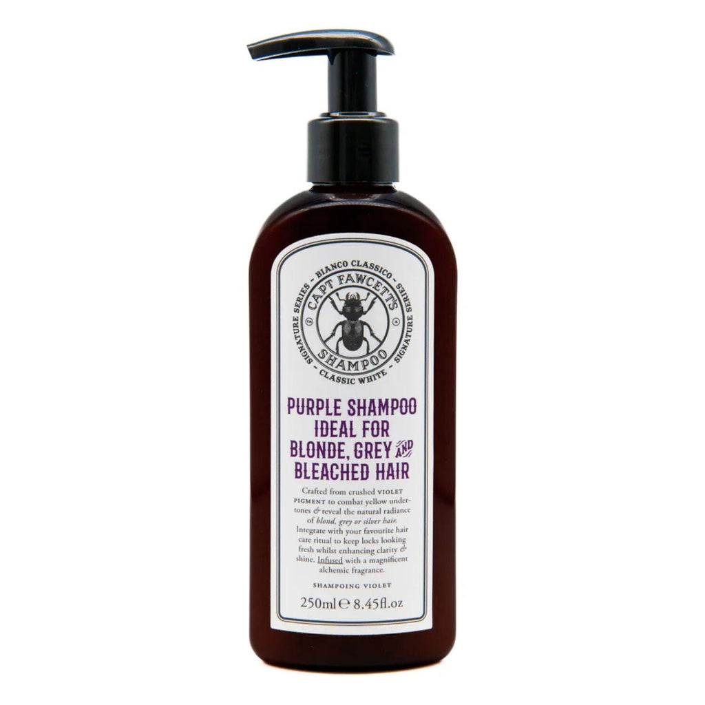 Captain Fawcett’s toning Shampoo is crafted from crushed Violet pigment to combat yellow undertones and reveal the natural radiance of white or silver hair. Integrate with your favourite hair care ritual to keep locks looking fresh whilst enhancing clarity and shine. Infused with a simply magnificent alchemic fragrance for the platinum connoisseur.