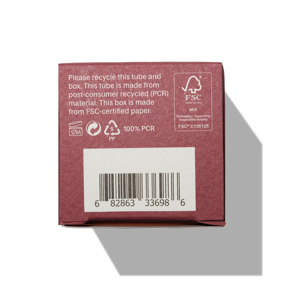 Inner tube packaging: the tube is made from 100% PCR (post-consumer recycled) plastic. No virgin plastic is used in the packaging. Recycling: When you’ve used your deodorant, remove the lid and the bottom piece of the vessel and clean the inside. Put the vessel back together and recycle as one piece with your curbside plastic recycling.